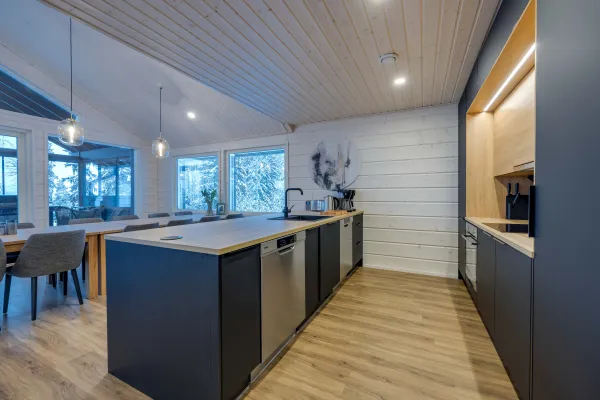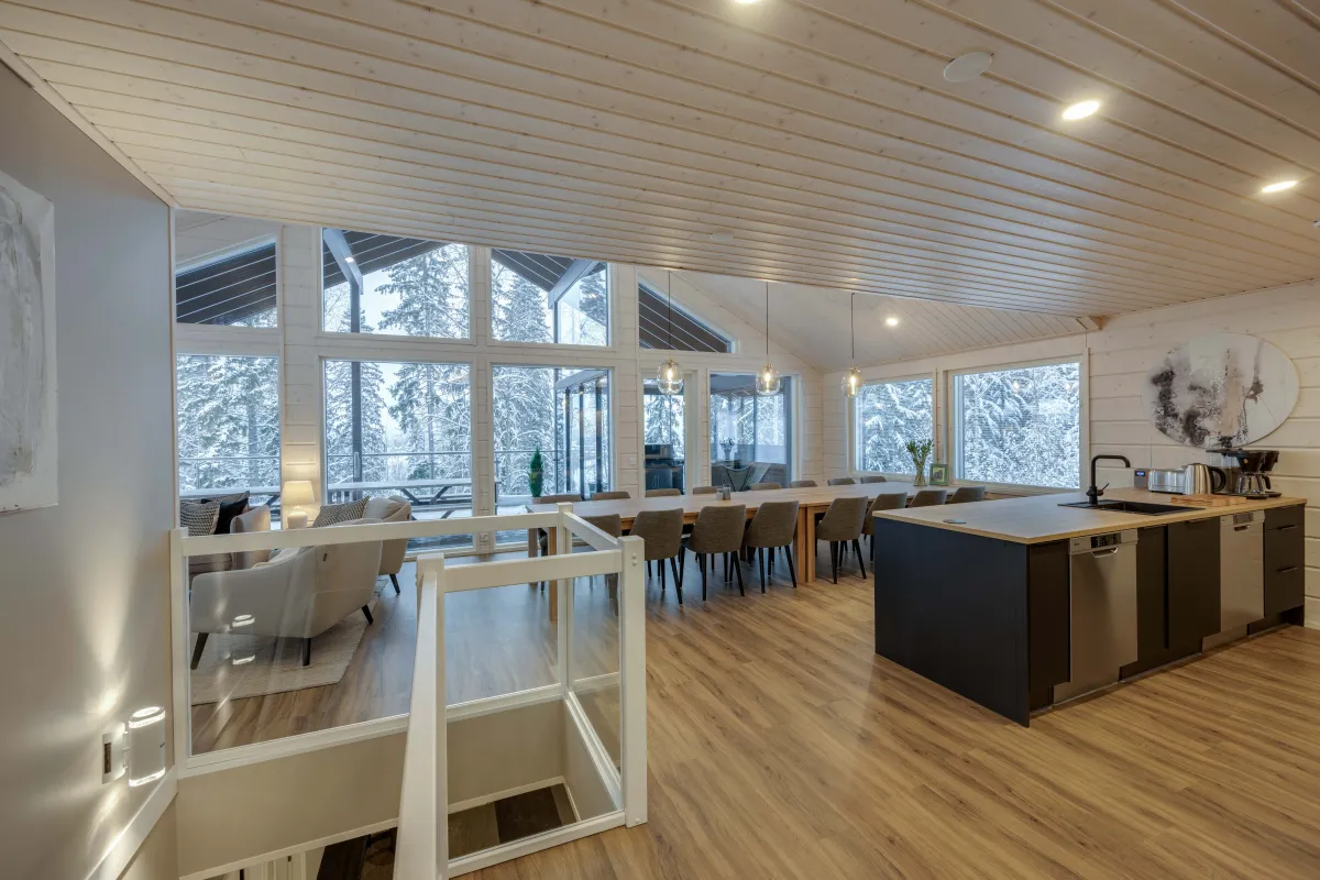 Himos offers versatile hobby opportunities. Himos Hillside, completed in December 2023, is a high-quality solution for meetings, representation and vacations. Complete kitchen equipment and crockery, wonderful terraces and dining tables for the whole group inside and outside enable shared mealtimes.