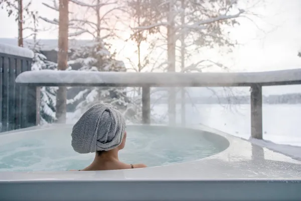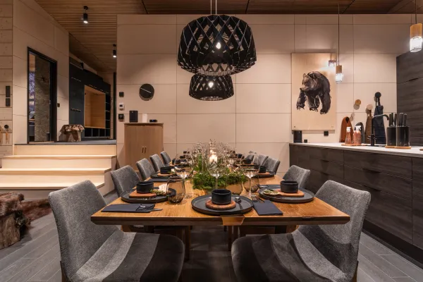 UGGO resort is Ukkohalla's only real luxury villa on the shore of Lake Syväjärvi and next to the slopes. The outdoor drop-in pool on the terrace with a view of the lake in connection with the panoramic sauna for relaxation, a dining table for 12 people in connection with the open kitchen for shared dining moments and the large landscape windows to the lake must be experienced. Having fun here is the essence of vacationing.