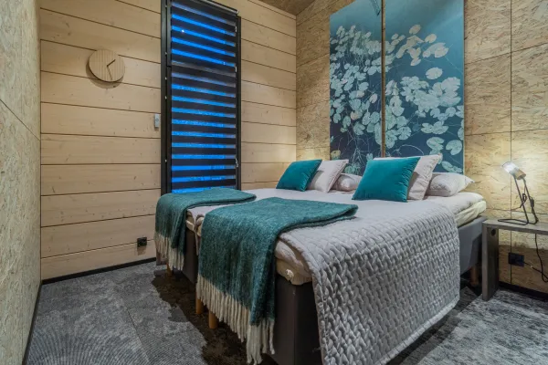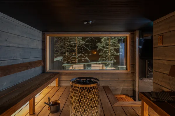 Completed in 2020. Own pier and sandy beach, ice-dipping hole open in winter. 200 meters to the Saunamaailma & Spa experience of nine saunas.