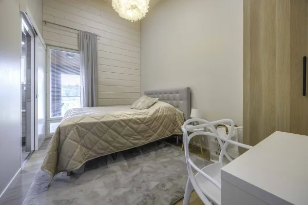 Petäjälinna accommodates 24 people. Each of the twelve double bedrooms features its own bathroom, and there are also four shared toilet facilities. The spacious and cozy living areas, along with a banquet hall that can accommodate up to 40 people, make the venue ideal for communal dining and hosting events.