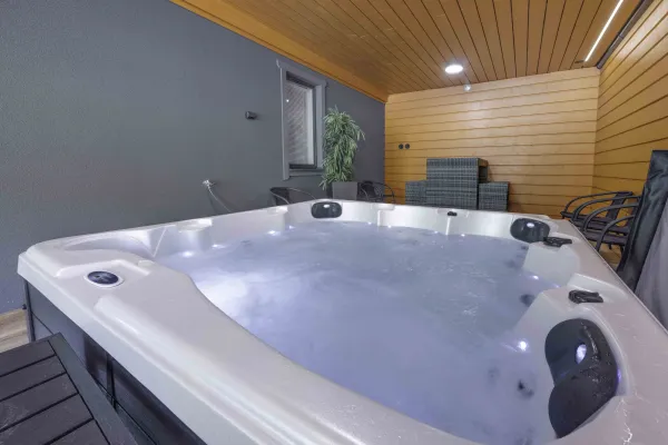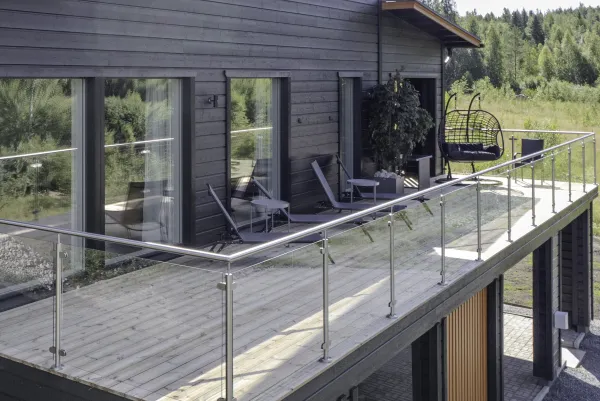 The main building of the villa features a spacious electric sauna that can accommodate up to 14 people at a time. Additionally, the lakeside sauna offers a charming sauna experience with its wood-heated stove, fireplace nook, and its own kitchen. The villa's private sandy beach and crystal-clear lake invite guests to swim and fish.