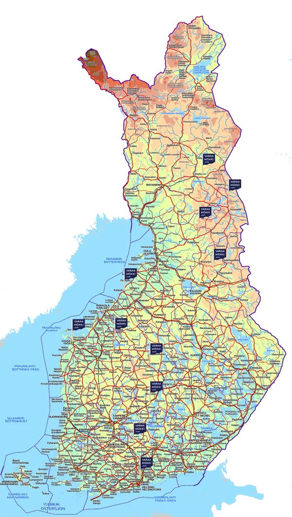 Varaamökki.com and Cabin Dreams Oy, which offers business accommodation solutions, serve throughout Finland. We are ready to find accommodation solutions both in our current operating locations and elsewhere in Finland, even on a fast schedule.